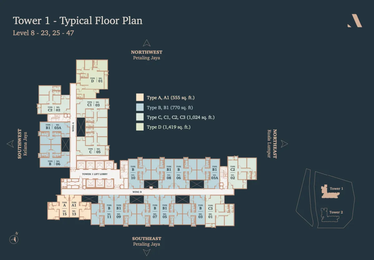 Situated right next to the Asia Jaya LRT Station and close to a myriad of highway links and lifestyle amenities, The Atera offers residents the best of PJ living.